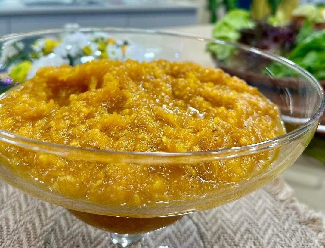 Corte a abóbora ao meio, retire as sementes e leve para assar.