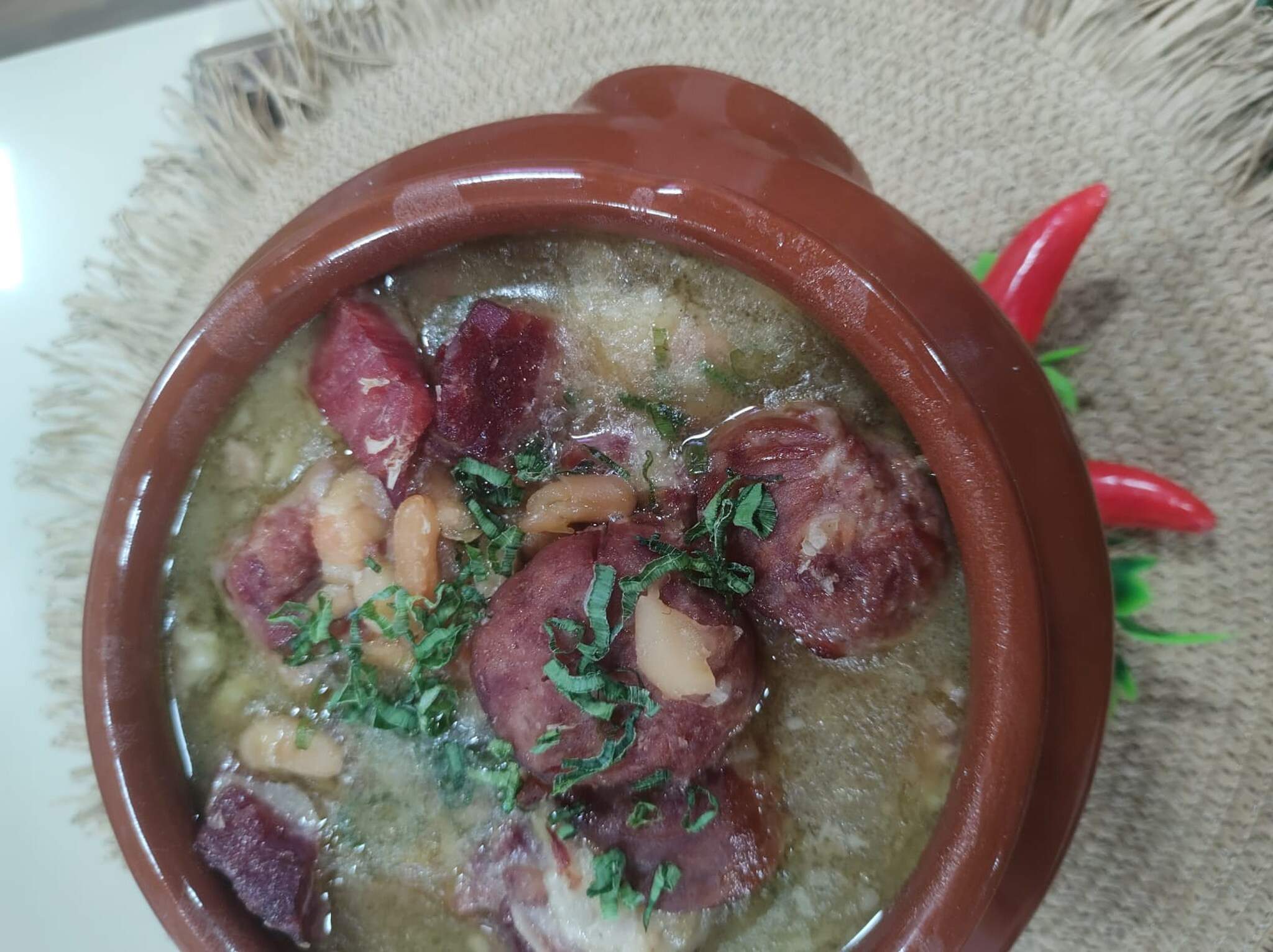 2. Dessalgar o lombo e a costelinha salgados, cobrindo as carnes com água e deixar de molho por 2 horas. Repetir o processo, trocando a água 4 vezes. Reservar.