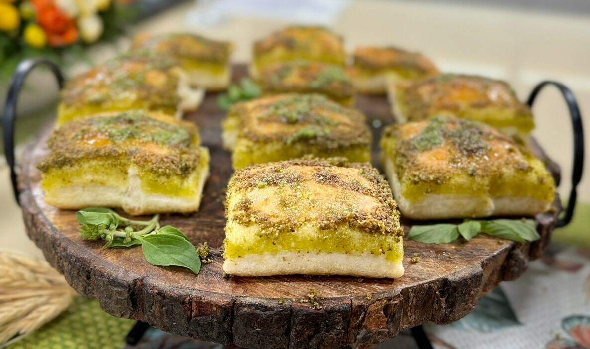 5. Faça leves cortes em formato de quadrado e coloque o pesto, leve para assar no forno pré-aquecido a 180°C por 40 minutos.