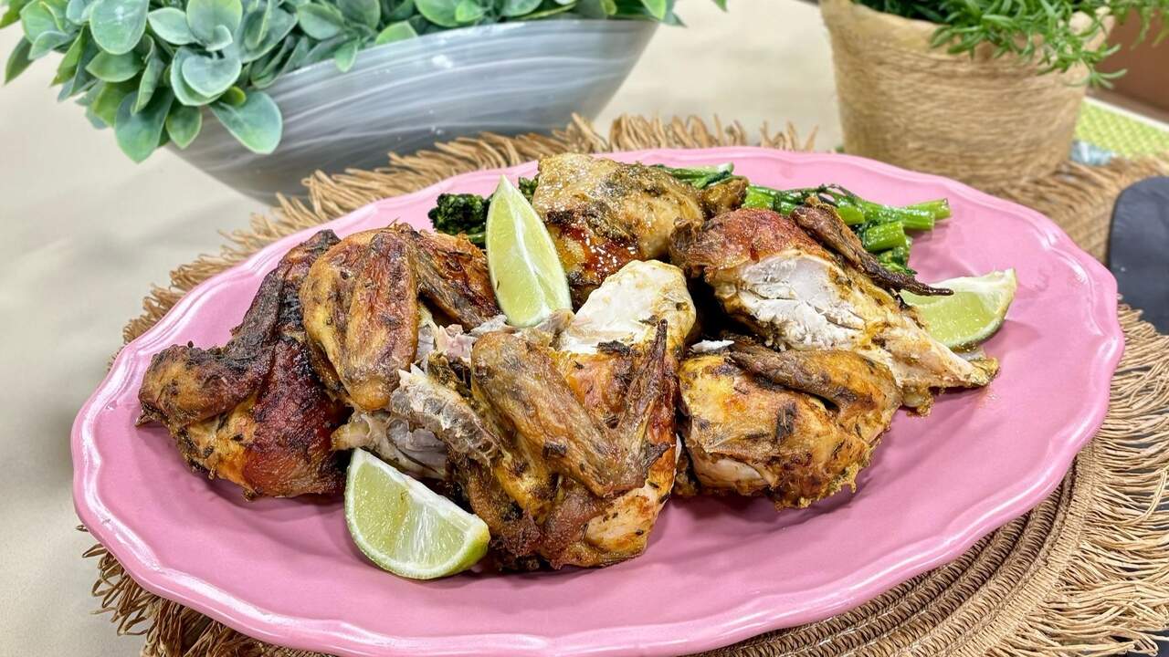 3 - Em uma tigela misture a mostarda, a maionese, a páprica, o alho em pó e as ervas frescas, esfregue bem no Galeto e leve para assar coberto com papel alumínio a 160° por 1 hora;