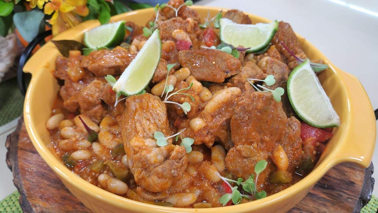 Coloque o pepino, o extrato de tomate, o tomate pelado, e deixe apurar bem, coloque o feijão, ajuste o sal e a pimenta.
