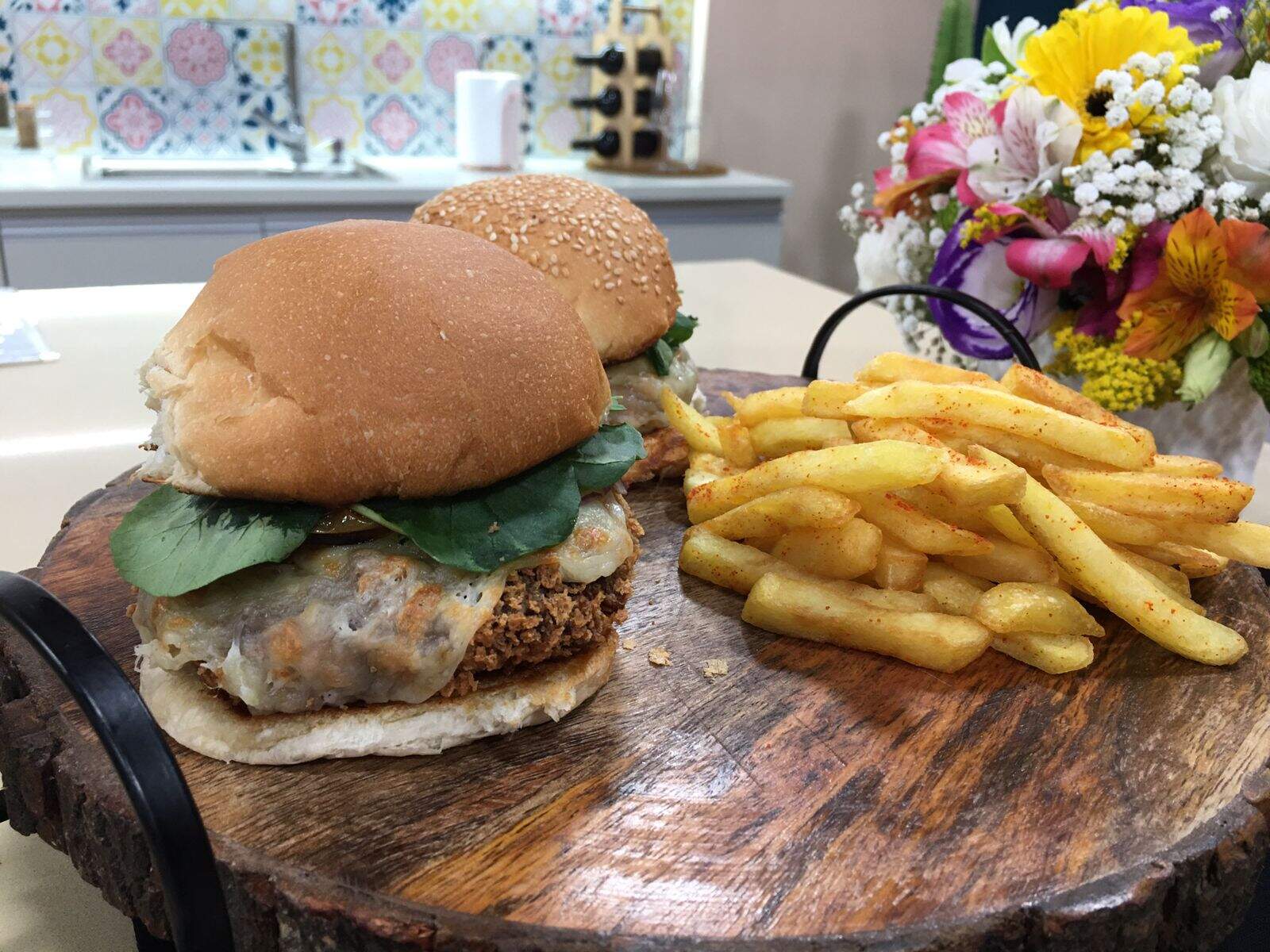 2. Leve ao freezer por 2 horas. Após esse tempo, retire o acém do freezer e com um cortador redondo modele os hambúrgueres. Empane na sequência com trigo, ovo e panko; frite em óleo quente. Monte o lanche com o pão, a maionese, os tomates e as folhas.