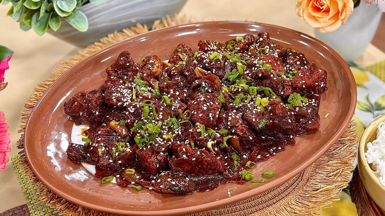 2 - Coloque o caldo de shoyu, o suco de limão, o amido de milho dissolvido e o frango frito e misture bem;
