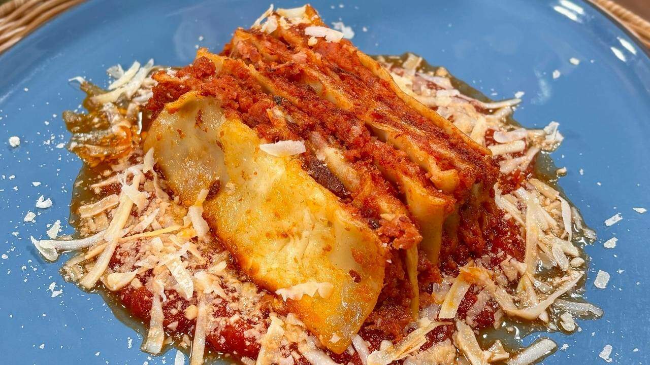 5 - Leve na geladeira por 4h00, corte fatias de aproximadamente três dedos e leve para grelhar na frigideira, sirva comprar parmesão.