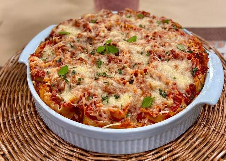 1. Abra a massa cozida. Coloque uma fatia de presunto, uma de mussarela e o molho à bolonhesa. Enrole e coloque em pé em uma assadeira ou travessa. Cubra com mussarela e leve para gratinar.