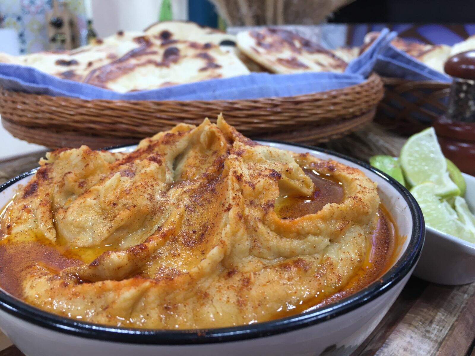 3. No processador coloque o grão de bico, a água, o suco de limão, o azeite e a tahini.