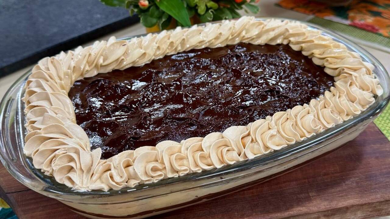 3 - Em um refratário, vá intercalando uma camada de creme de doce de leite, uma de biscoito umedecido no leite e depois o ganache;
