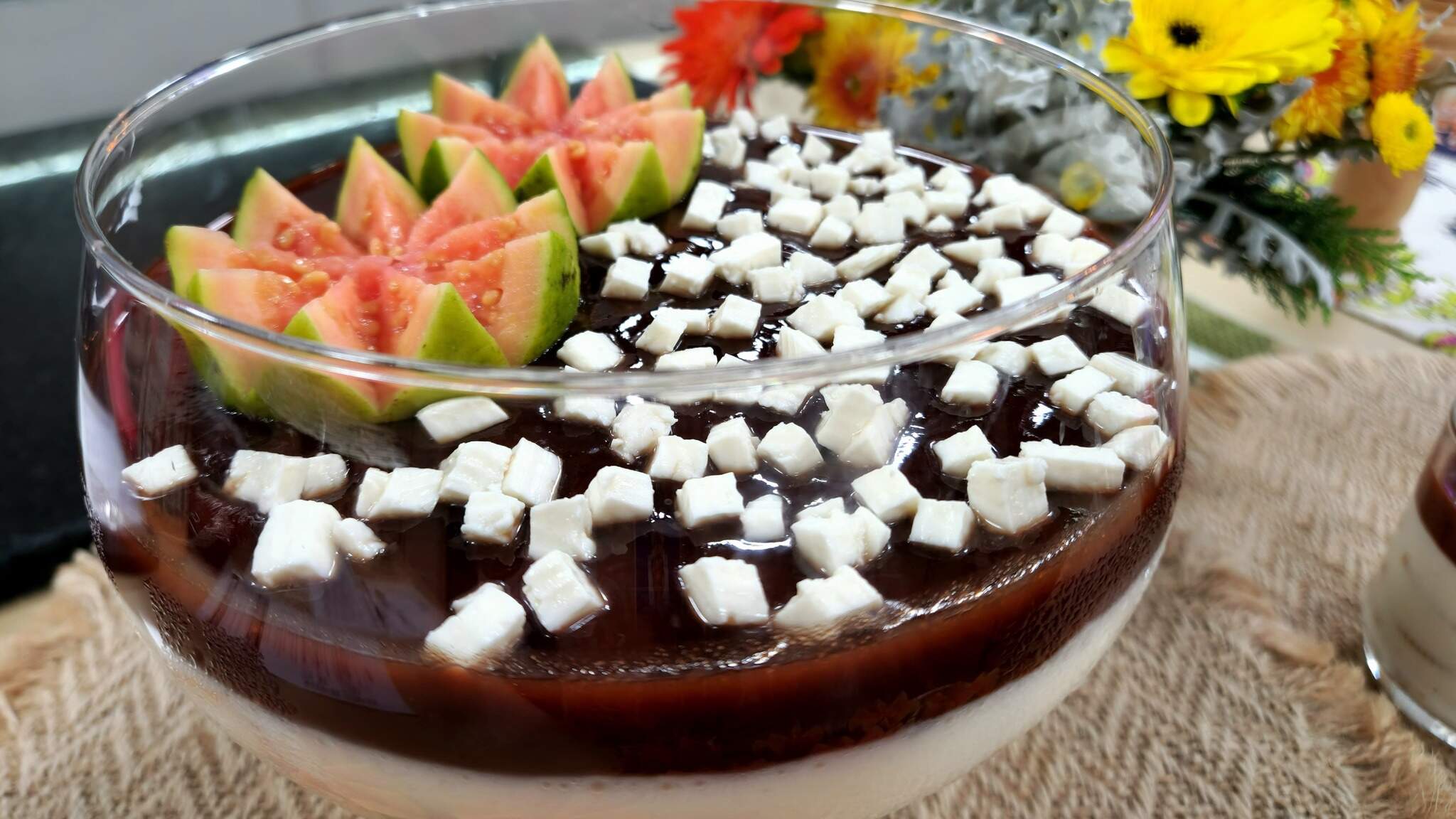 Intercalar creme, bolacha, creme, bolacha até acabar os ingredientes e por fim colocar a calda depois de fria em cima. Molhar a bolacha em leite ou guaraná.