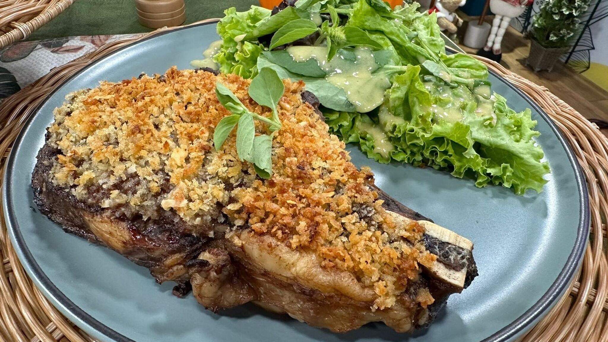 Misturar todos os ingredientes até virar uma massa homogênea, adicione uma camada da massa por cima do prime rib já selado e levar ao forno pré-aquecido a 180°C de 8 a 12 min, ou até que o queijo derreta e forme uma superfície crocante e dourada. Retire do forno e deixe esfriar por alguns instantes, para fatiar a carne.