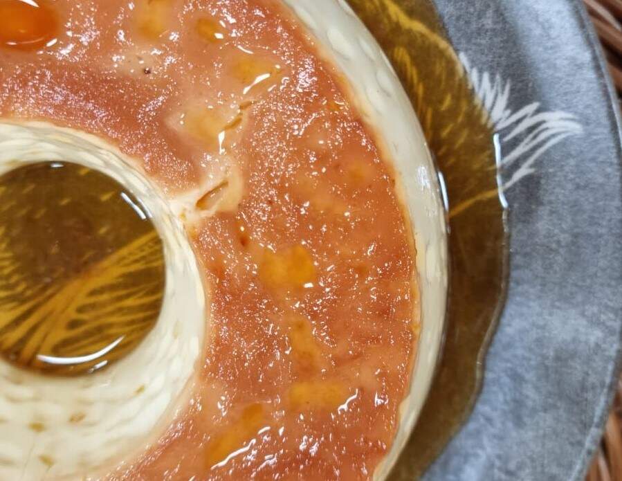 2. Coloque em uma assadeira com furo no meio untada com o caramelo.