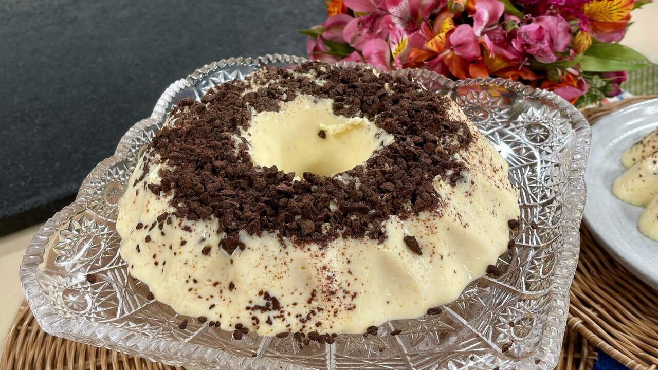 4 - Unte a forma e salpique chocolate ralado, coloque o creme de maracujá e leve para gelar por 4 horas.