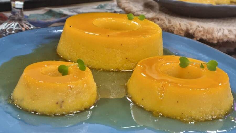 3. Colocar o creme em forminhas untadas e com um pouco de mel.