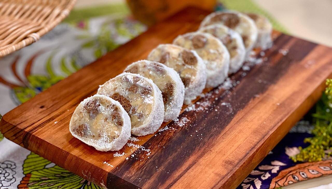 4. Com a ajuda de um plástico filme, enrole no formato de salame e leve para gelar de um dia para o outro.
