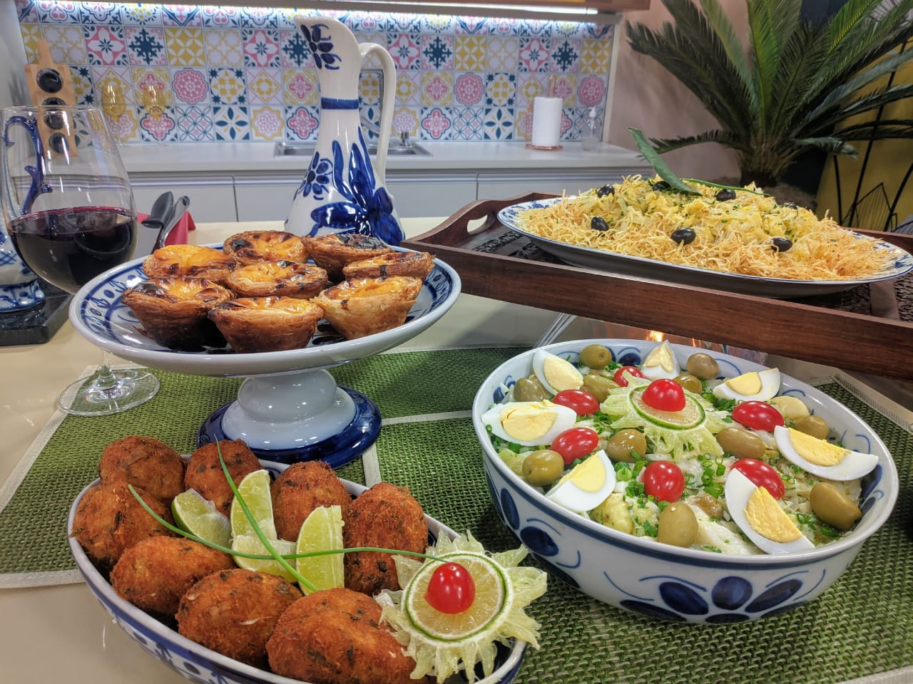 Coloque em um bowl (tigela) a batata picada em pedaços generosos, o bacalhau, a salsa, a cebolinha, a azeitona, a cebola, o ovo, o sal e a pimenta. Misture. Em seguida, adicione o limão já espremido, o azeite e misture. Sirva em uma travessa e decore com ovos cortados em meia lua e azeitonas verde inteiras.