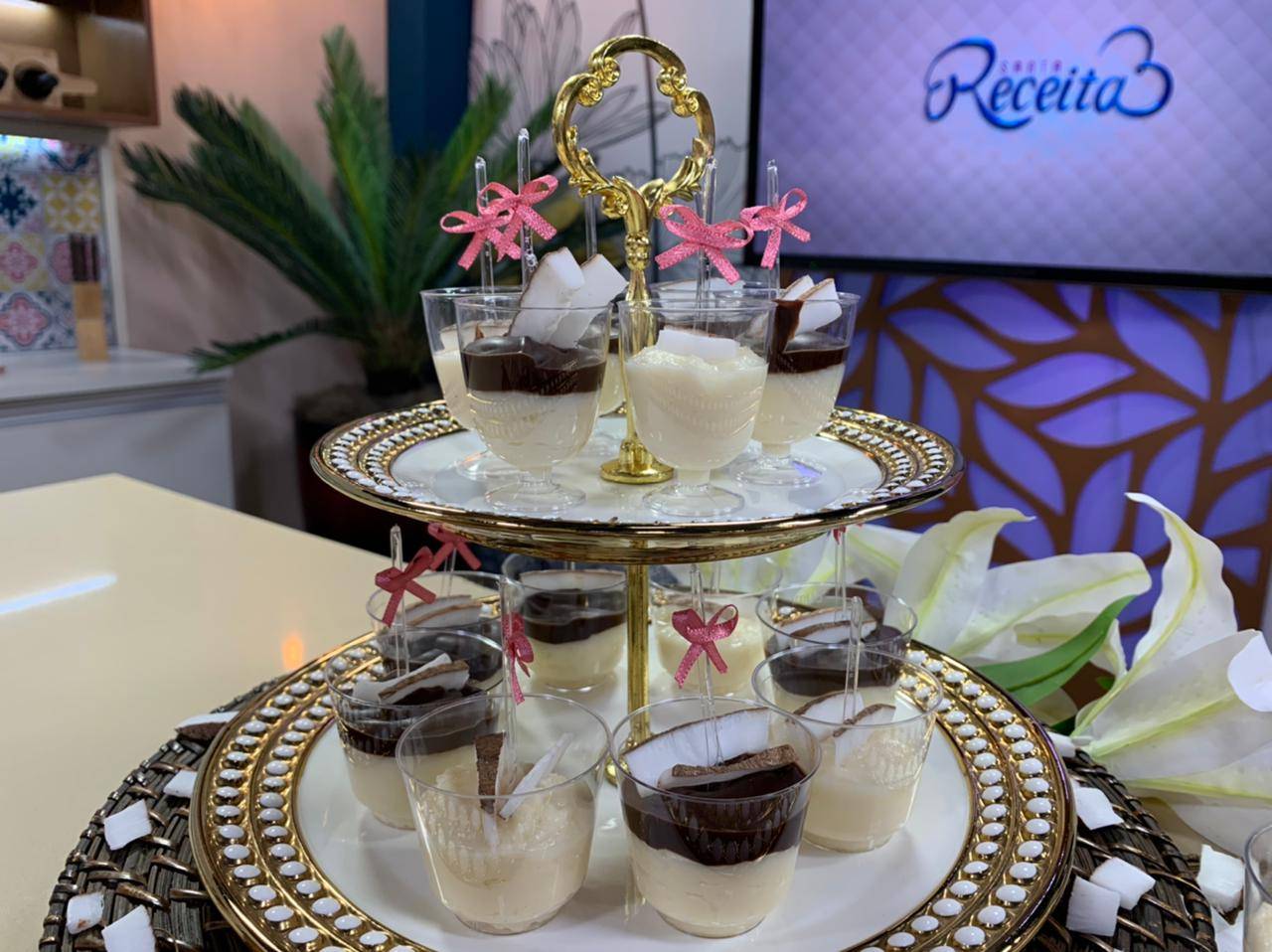 Em mini copinhos ou tacinhas coloque a massa de coco e deixe esfriar bem. Coloque a cobertura e decore com coco fresco.