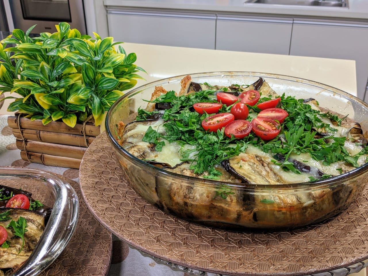 Em uma assadeira espalhe o azeite, coloque as fatias de berinjelas fazendo camadas sobre as camadas salpique sal, pimenta, orégano, leve ao forno por 30 minutos. Tempere os tomates com sal, pimenta e ervas finas coloque o maço de escarola cortado em uma tigela adicione a maionese e o queijo amassado tempere com sal, pimenta a gosto. Em um refratário untado com azeite coloque fatias de beringela no fundo e por toda a borda do refratário coloque um pouco do creme de escarola, muçarela, tomate e um pouco de molho e fatias de berinjela. Faça assim até terminar, no final coloque molho e muçarela leve ao forno pré-aquecido por 20 minutos.