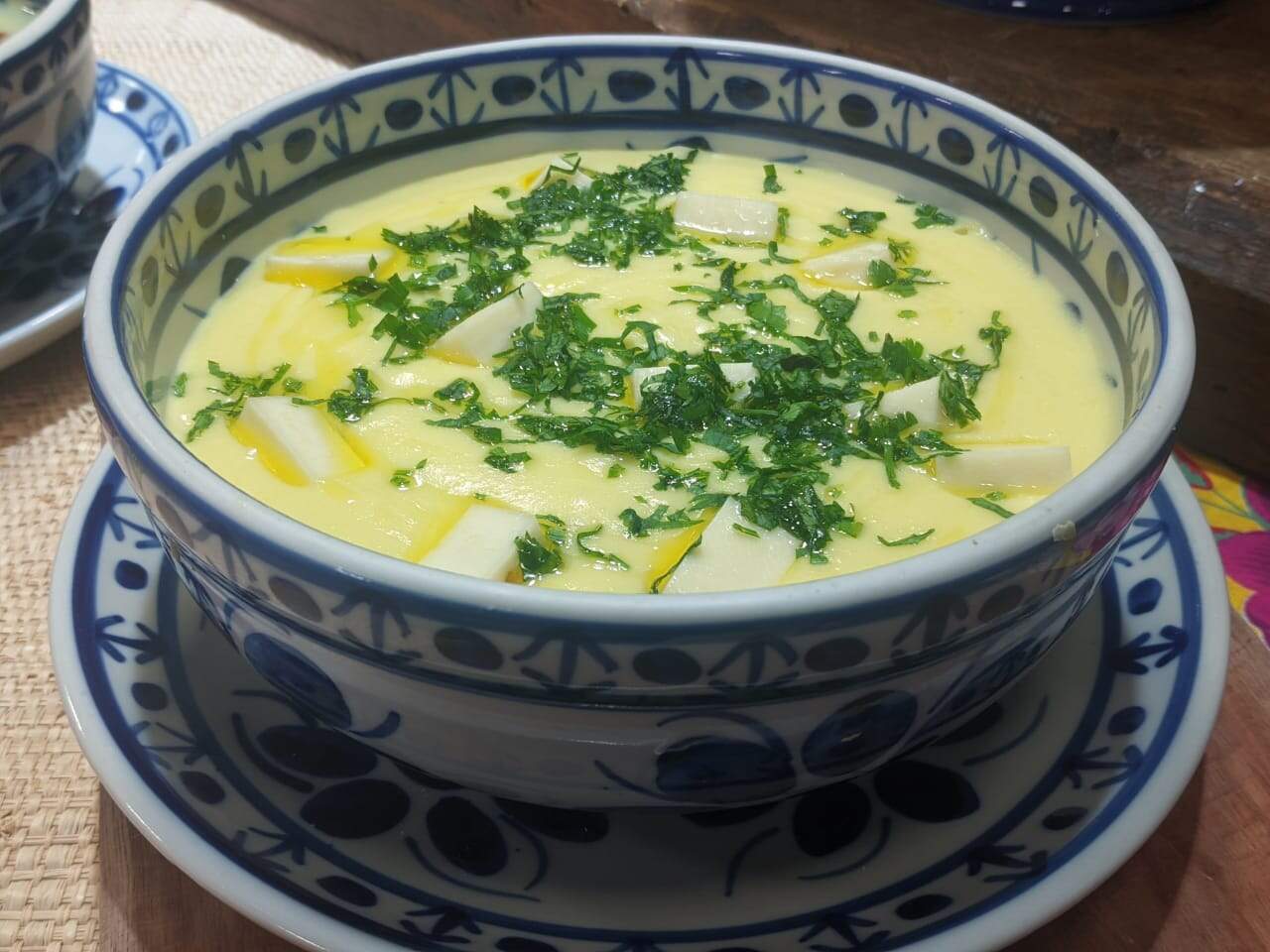 Coloque a mandioquinha para cozinhar com água, adicione uma pitada de sal, cebola e alho. Quando estiver cozido bater tudo no liquidificador. Volte para a panela, deixe reduzir. Adicione o creme de leite e deixe em fogo baixo por 10 minutos. Finalize com o queijo, salsa e pimenta.