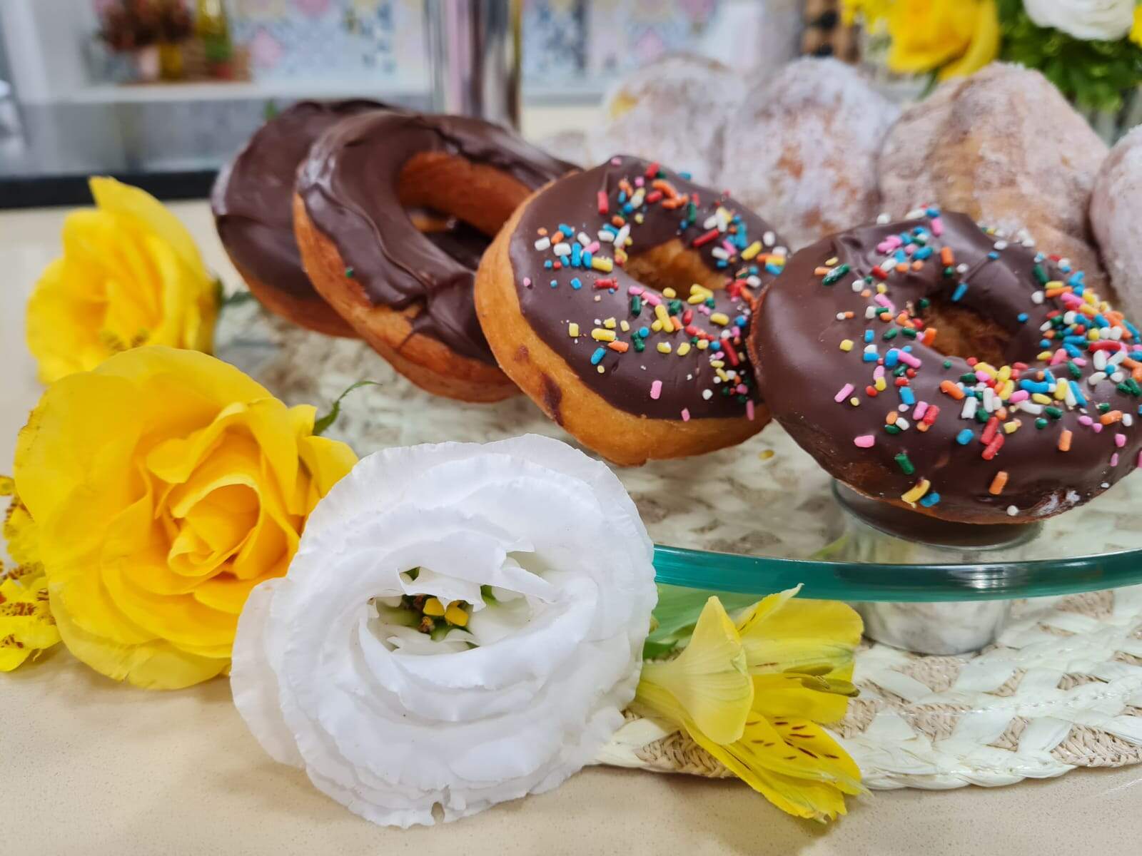2. Cobrir os donuts com fondant (adicionar corante de sua preferência) e granulado.