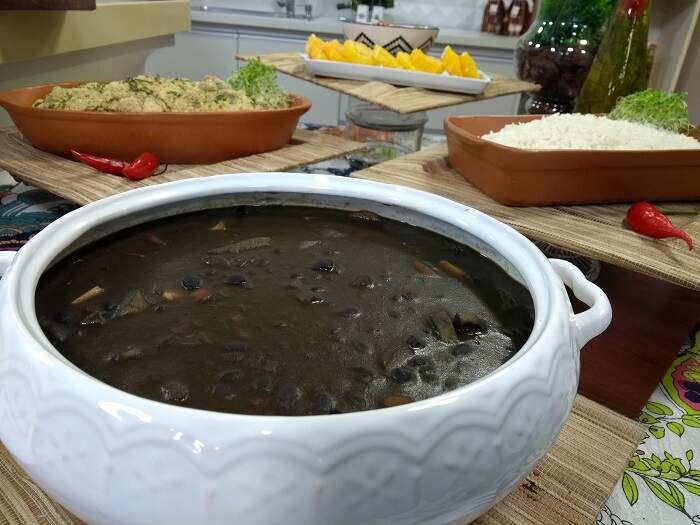 9. Desligue o fogo e sirva com arroz branco e farofa para feijoada.