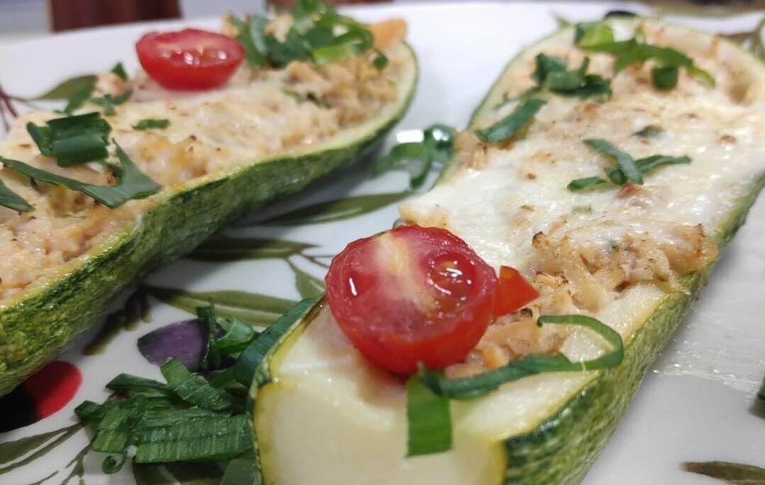 Corte as abobrinhas e as berinjela ao meio, no sentido do comprimento. Tire cuidadosamente a polpa e reserve. Pré-cozinhe as abobrinhas e berinjela em água fervente com sal e reserve.