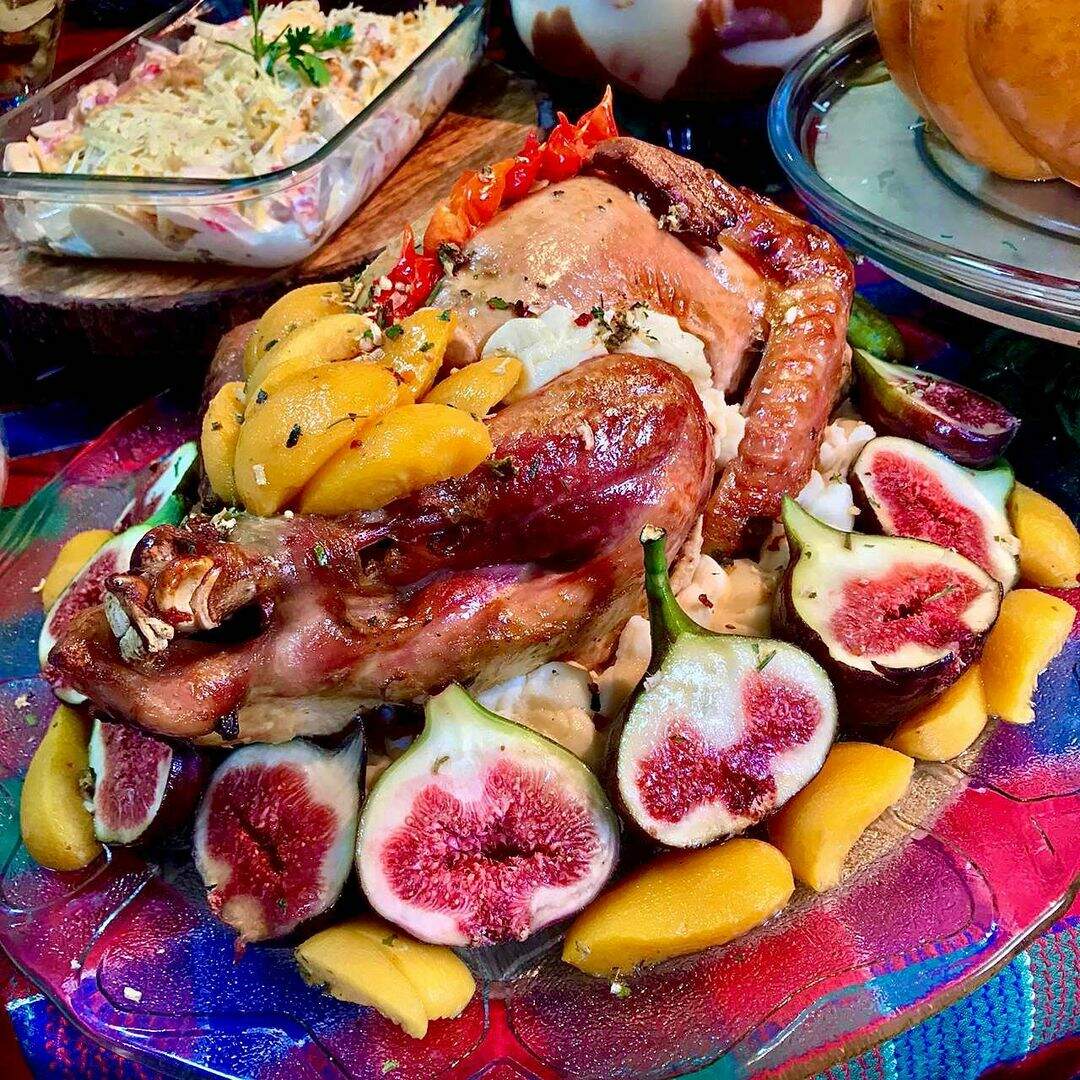 Modo de Preparo: Descongele o Peru conforme instruções de embalagem, besunte com margarina e regue com o vinho misturado ao suco e laranjas dentro e fora enrole uma fatia de bacon em cada pedaço de laranja e coloque dentro do peru. Encha bem e cubra com papel alumínio, leve para assar até o momento que estiver assado retire o papel e deixe dourar. Regue sempre com o caldo, retire e sirva com purê de batata especial.