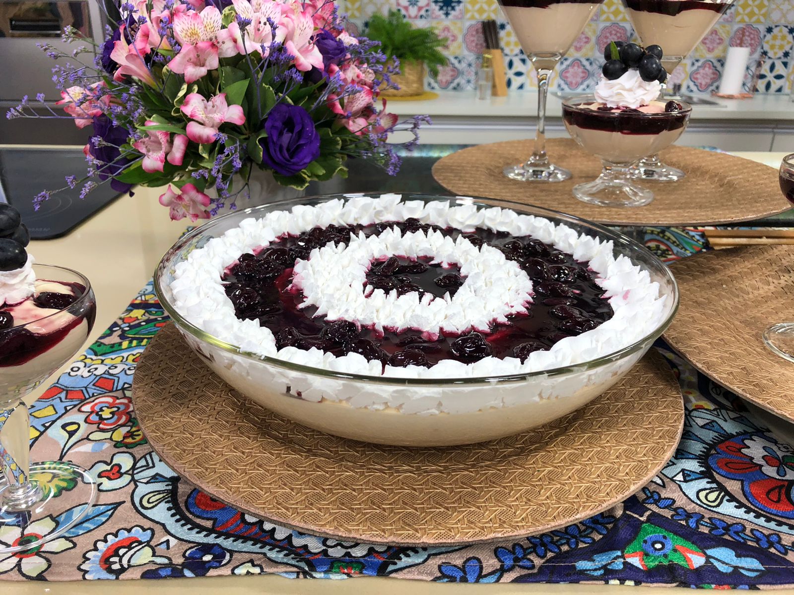 Bata as gemas com sal e açúcar, junte o creme de leite e leve ao banho-maria por 10 minutos. Retire do fogo, misture os demais ingredientes e as claras ao final. Leve gelar, depois de gelado, cubra com as uvas e decore com chantilly.