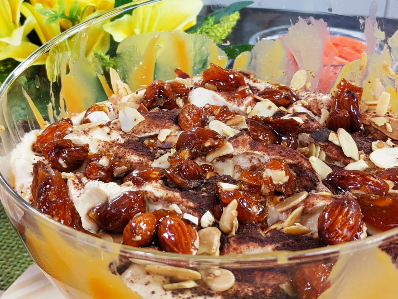 1/2 xícara (chá) de amêndoas laminadas levemente torradas.
