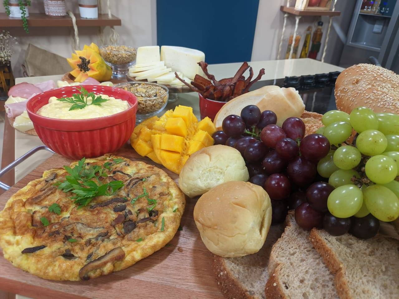 Para o omelete com cogumelos frescos e queijos
