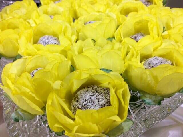 Modo de preparo: levar todos os ingredientes ao fogo mexendo sempre até soltar do fundo da panela, deixar esfriar, enrolar, banhar no chocolate meio amargo e passar no coco ralado.