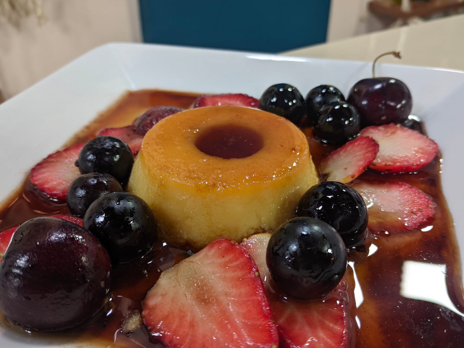 Mexendo sempre parece que ela vai ficar um puxa e não vai dar certo, mas vai! Deixe no fogo baixo e vá adicionando a água e mexendo sempre. Quando o processo de calda ficar pronto, não estará nem empelotado e estará liso e brilhante. É quando você coloca em uma vasilha de vidro e separa com filme plástico. E quando esfriar ela estará perfeita para colocar nos pratos. Vamos untar as forminhas com a calda e depois jogar a massa de pudim de queijos e levar ao banho Maria. Por 40 minutos aproximadamente em temperatura de 180 graus. Quando esperar e sair seco, mas com aspecto cremoso, você pode desenformar. Decore com frutas as frutas.