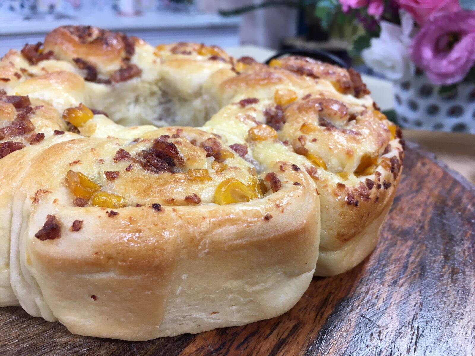 Depois da 1º fermentação, divida a massa em 2 partes iguais. Com auxílio de um rolo, abra a massa como um retângulo. Passe o recheio e enrole com um rocambole. Corte o rocambole em fatias de 4 cm.