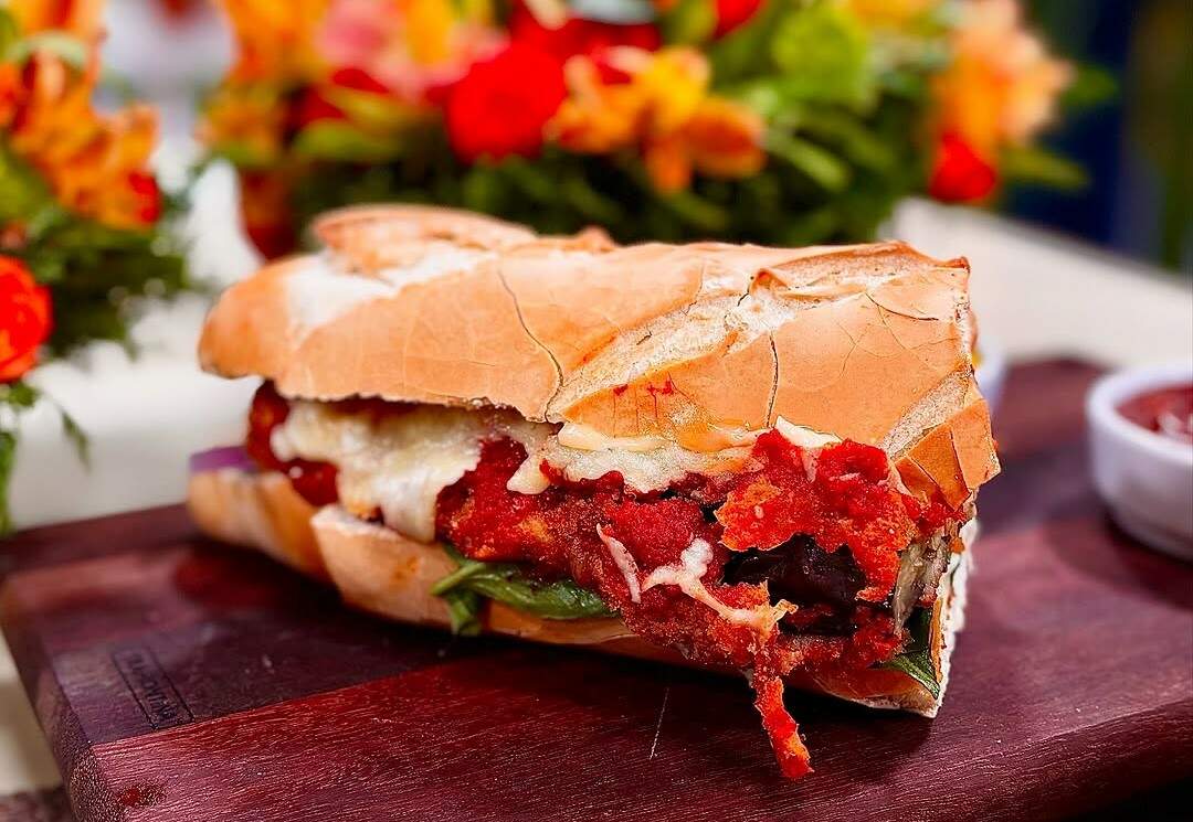 - Coloque o molho de tomate, a mussarela e leve para gratinar.