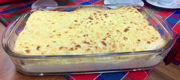 Modo de preparo: numa panela, coloque a manteiga e a farinha e deixe dourar, acrescente o leite, sal e noz moscada e deixe engrossar, mexendo sempre, tire do fogo acrescente o creme de leite e uma xícara do queijo parmesão. Num refratário coloque um pouco do molho branco e faça camadas: pão, muçarela, molho branco, pão, molho branco e o queijo prato, pão, molho branco e parmesão e leve ao forno para gratinar.