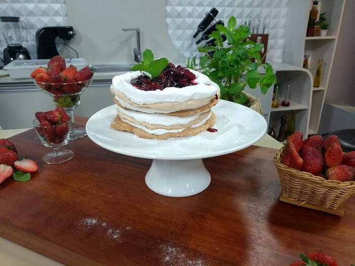 Aprenda a fazer um delicioso suspiro recheado com frutas vermelhas na frigideira!