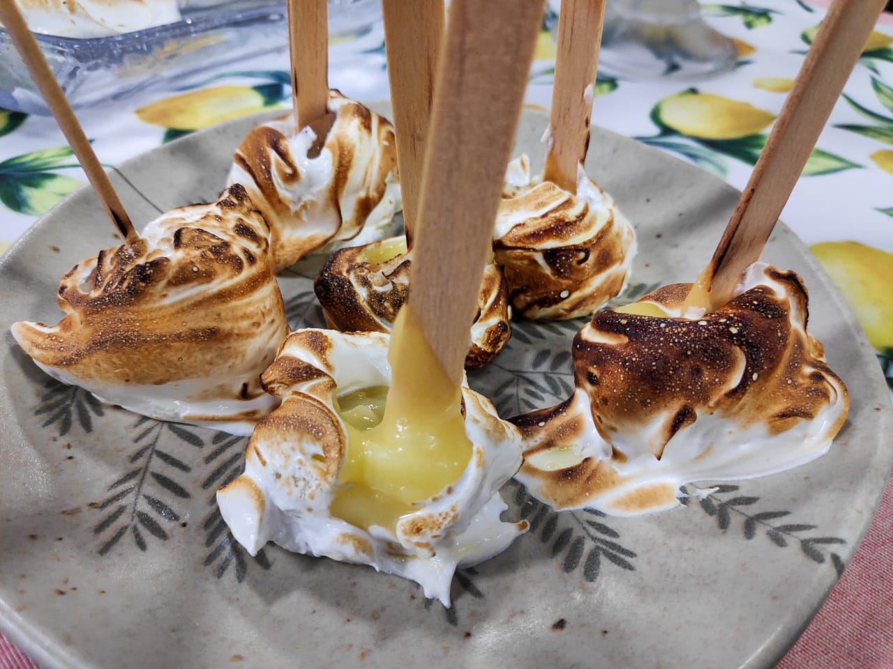 Em uma vasilha de vidro, misture as claras e o açúcar. Coloque sobre uma panela com dois dedos de água em banho-maria, mexendo constantemente por 8 minutos, até que o açúcar esteja completamente dissolvido. Adicione a mistura em uma batedeira em velocidade alta e bata até formar picos duros. Coloque em uma tigela bem alta e estreita. Retirar o picolé do congelador, soltar das forminhas passando um pouco de água quente do lado externo. E mergulhe o picolé no merengue segurando pelo palito. Para finalizar é só usar o maçarico ou colher quente.