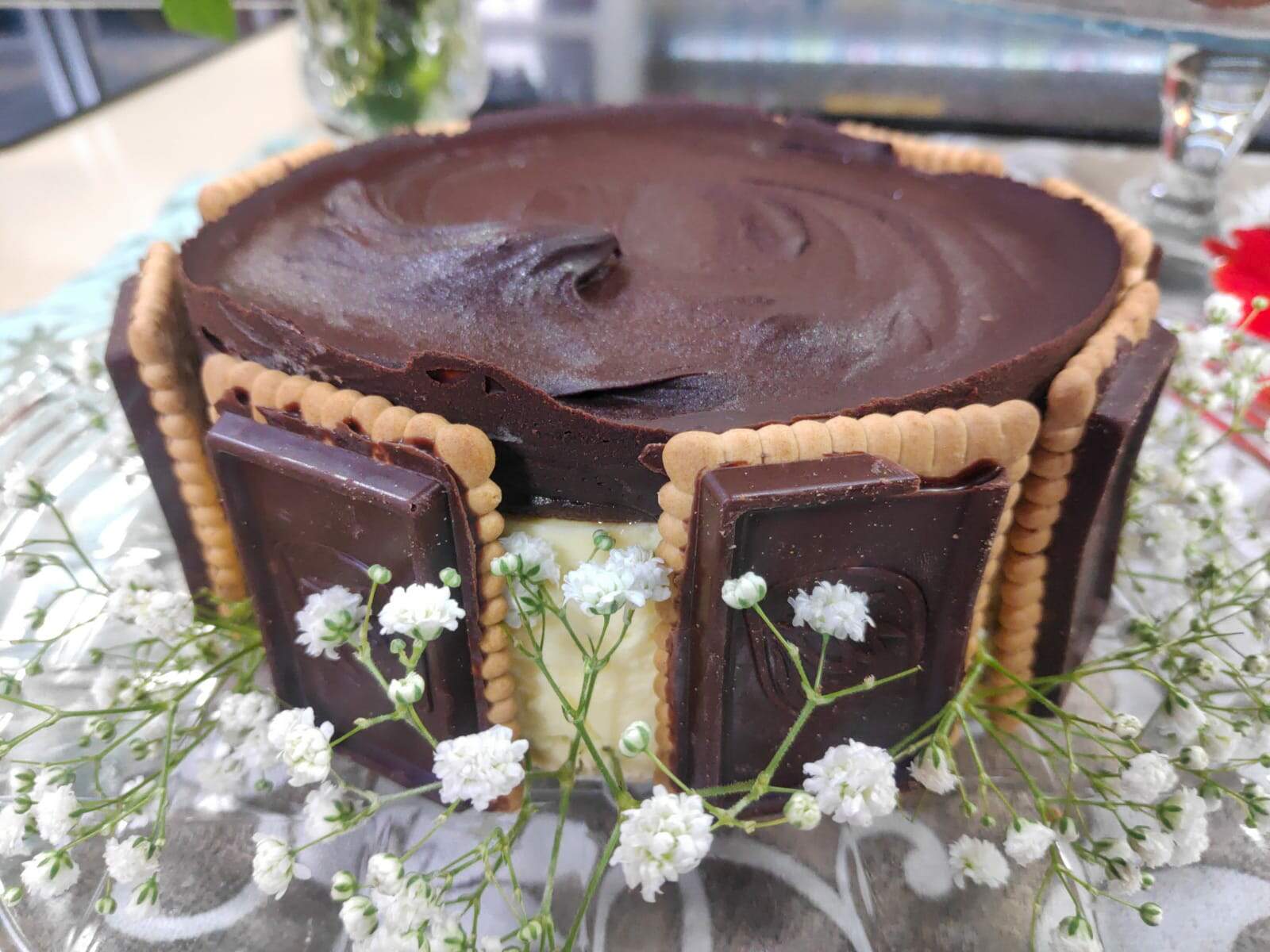 Comece preparando o creme da torta holandesa: bata na batedeira a manteiga com o açúcar até obter uma pasta suave, com os grãos de açúcar dissolvidos. Acrescente as gemas, uma de cada vez, batendo até incorporar. Adicione a essência de baunilha no soro do creme de leite (se usar em lata, senão pode molhar no leite) e molhe as bolachas Maria rapidamente na mistura, evitando que fiquem muito moles. Disponha essas bolachas no fundo de uma forma de fundo removível, em uma única camada. Em seguida distribua as bolachas Calipso ao redor da forma, em pé, com o lado do chocolate encostando na forma (virado para fora). Adicione o creme preparado anteriormente e reserve a torta no freezer por, ao menos, 24 horas. Após esse tempo, prepare a cobertura: misture todos os ingredientes respetivos numa panela e leve ao fogo por alguns minutos, até reduzir bem e formar um creme espesso, mexendo para evitar queimar. Desligue o fogo, espere essa calda esfriar e despeje por cima da torta. Devolva ao freezer até ao momento de servir.