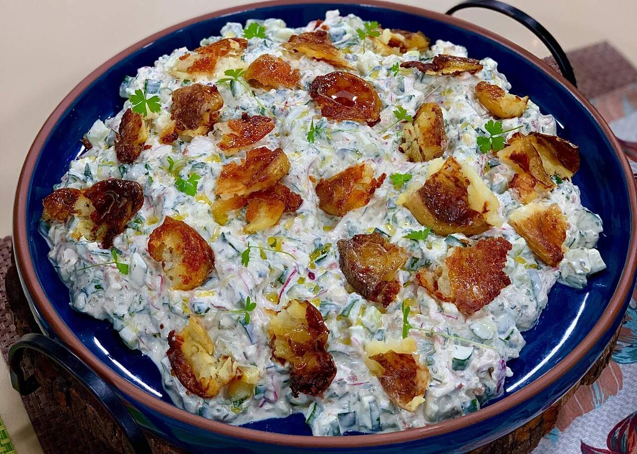 4. Misture todos os ingredientes. Ajuste o sal e a pimenta. Finalize com azeite.