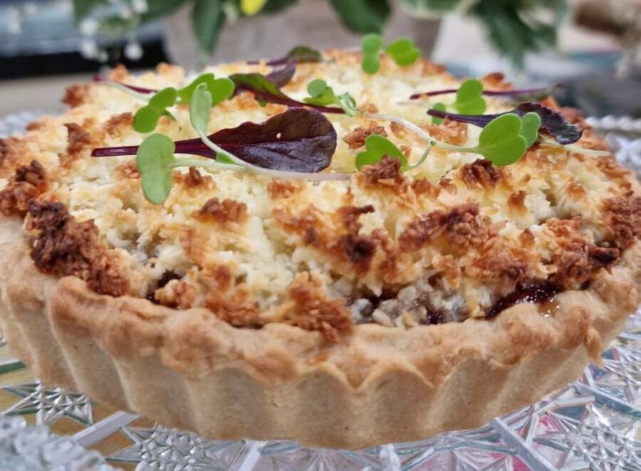 1. Coloque o creme de goiaba na massa já assada. Acrescente a cobertura e leve para assar, por 30 minutos, a 180 graus