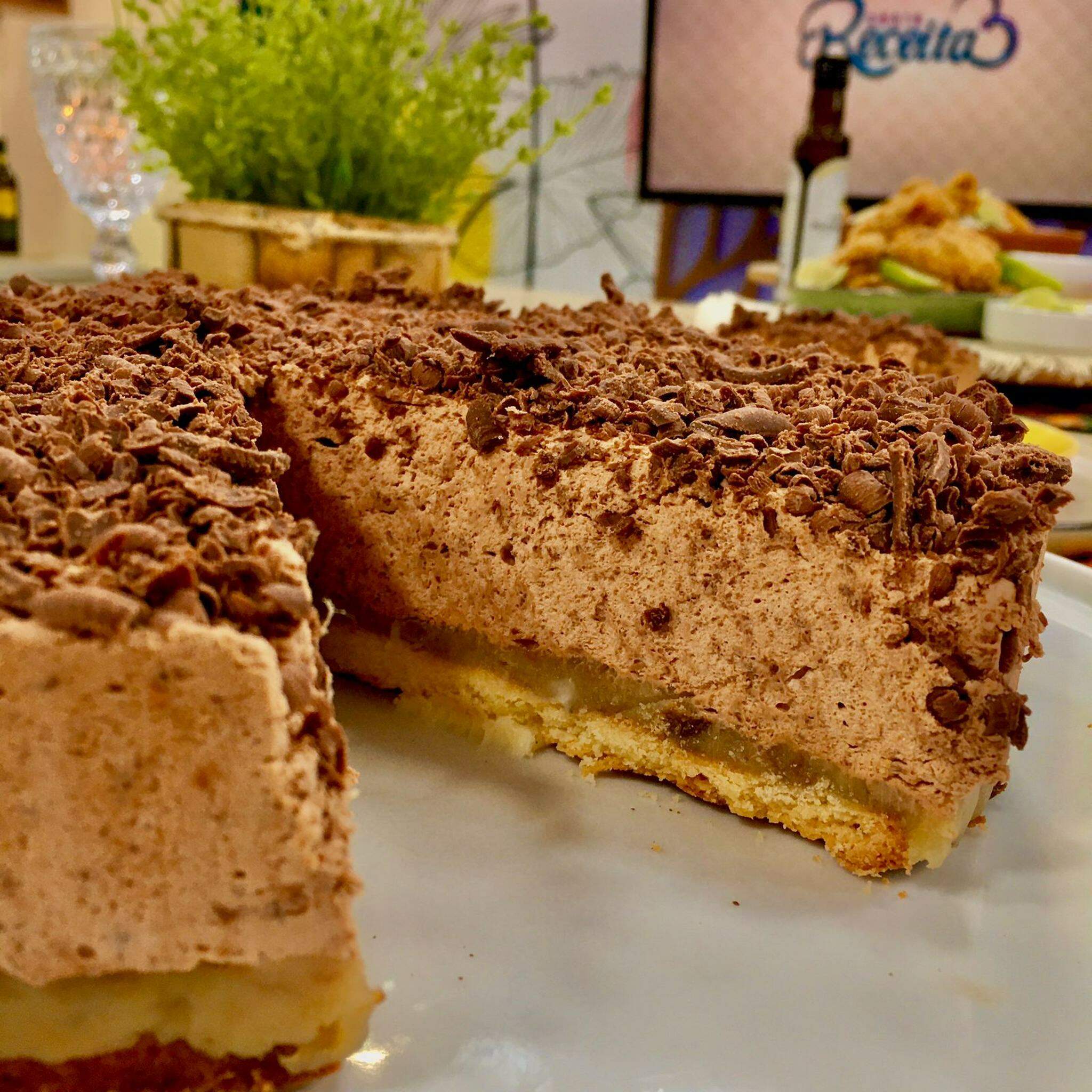 Dentro da forma com base de torta já assada e com as bananas, espalhar a mousse por toda a torta, cobrindo-a completamente.