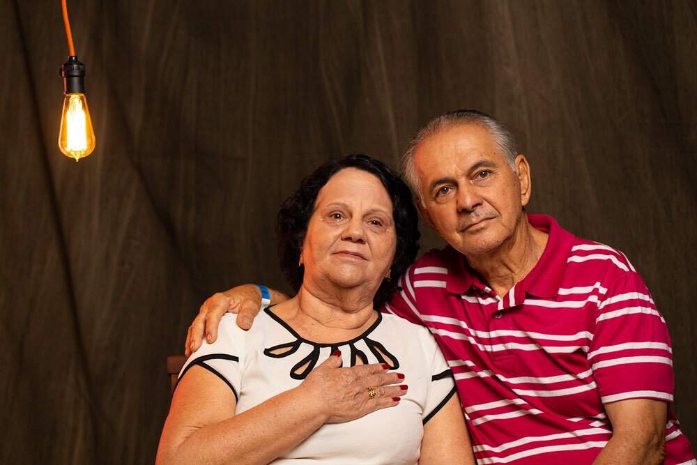 “É muito emocionante estar aqui na Casa da Mãe. Sempre estamos aqui para agradecer. Agora este ano foi mais porque nós recebemos um milagre na nossa vida, através do nosso filho. Eu tenho relato de dois filhos. O mais velho tem 52 anos, ele foi numa fazenda a mil quilômetros de Goiânia, numa festa de família. Lá ele foi num rio e tentou pular de uma pedra para a outra; como ele tem o joelho operado, não conseguiu, e fraturou o fêmur. Então, como eram mil quilômetros de Goiânia, não tinha avião para trazê-lo para a capital. A esposa dele tinha feito o curso de enfermagem e veio com ele de ambulância, aplicando uma injeção na barriga dele para não dar embolia pulmonar. Fez cirurgia, colocou placa de platina com 24 parafusos, aí deu problema no joelho. Ele fez em torno de sete cirurgias, enxerto, e foi rejeitado. Depois ele fez um enxerto do osso da bacia. E, graças a Deus, para honra e glória de Nossa Senhora Aparecida, Ela intercedeu junto a Deus, e não ficou nenhuma sequela. Ele está bem e tem 15 dias que ele também esteve aqui para agradecer a Nossa Senhora Aparecida. Agora, o terceiro filho, o Cristiano, ele teve trombose e depois, erisipela. A erisipela foi para o pulmão e deu infecção generalizada. Ele fez a traqueostomia, ficou entubado por três meses, fez hemodiálise, deu pneumonia. A primeira vez que a gente foi vê-lo na UTI, eu pedi muito a Deus, forças. Quando eu o vi naquela situação, cantei aquela música do Padre Antonio Maria: ‘Cura, Senhor, onde dói, cura, Senhor, bem aqui. Cura, Senhor, onde eu não posso ir’. Foi uma peregrinação de 112 dias na UTI do hospital. Depois nós fizemos da nossa sala uma UTI. E como a gente já tem o costume de rezar o terço todos os dias e pedir a intercessão de Nossa Senhora, Nossa Senhora deu a cura para ele.”