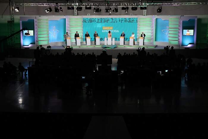 Na noite desta quinta-feira (20), a Rede Aparecida de Comunicação transmitiu o debate eleitoral entre os candidatos à Presidência da República, direto do Santuário Nacional. Comandado pela jornalista Joyce Ribeiro, o encontro foi promovido pela Conferência Nacional dos Bispos do Brasil (CNBB) e transmitido pela TV Aparecida.