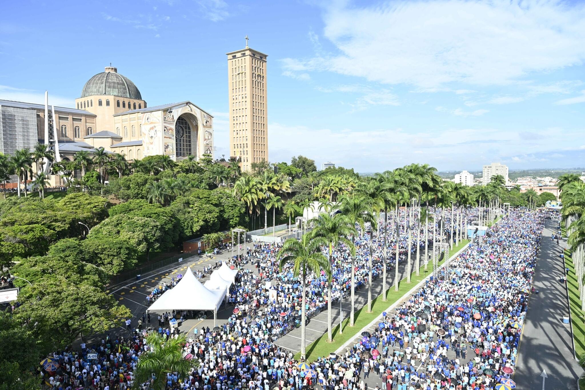 A saída será na Zona Norte do Santuário (parte frontal), passando pelo Campanário e seguindo pela rua atrás da Capela do Batismo, com destino a Tribuna Papa Bento XVI.